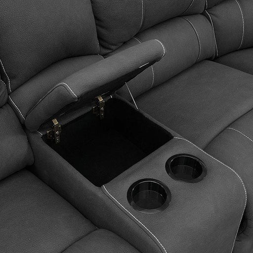 FOA EastThis optional center console with cupholders and ample storage is offered to match all three colors of this set.