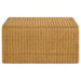 Elevate your boho-inspired living room with this mid-century modern rattan coffee table set, crafted with natural woven rattan over sturdy metal frames. The organic texture and natural finish exude warmth and charm, making it perfect for relaxed or casual interiors. Featuring elegant waterfall edges that flow seamlessly to the floor, the design includes plastic glides to protect floors from scratches. Open spaces beneath each table offer convenient storage for baskets, books, or throw blankets.