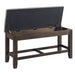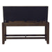 The Colorado dining collection, brings boldness to a casual dining scheme. With a trestle base design and a deep finish, this everyday counter height table serves as a perfect gathering space. Enjoy an attractive chevron design on its table top while accommodating deep chairs and extra storage. The inventive table design creates options for positioning to suite your needs. The slat back design of the chair and the black hardware finishes, reflect a design-forward blend of modern and farmhouse concept. Features: • Crafted from Solid Wood • Acacia Veneer Surfaces • Distressed with saw makings and skiving detail • Foam Cushioning • upholstered in cream fabic • Tapered Legs • Modern Farmhouse Design • Easily Assembled Dimensions: Depth: 17.0" x Width: 48.0" x Height: 25.0" Weight: 40.0 lbs.