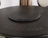 Add luxury to your decor with this visually stunning dining ensemble. Wooden frames are finished in dark espresso while the chairs feature contrasting bright, ivory fabric. For convenience, there's a lazy susan on the round table top and an open bottom shelf and large drawer below for extra storage. The chairs complement perfectly, with slightly curved round backs and padded seats upholstered in 100% polyester.