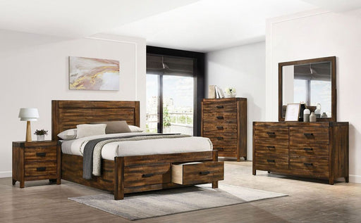 FOA EastThe combination of plank style construction and weathered barn finish in this bedroom set will help you create a casual, comfortable bedroom haven....