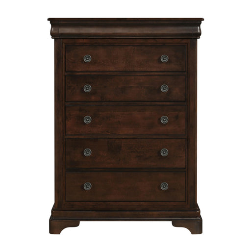 ElementsThe Brunswick 5-Drawer Chest in Mahogany stuns with the beauty of traditional style. Skillfully made with solid pine wood, dovetail drawer construc...