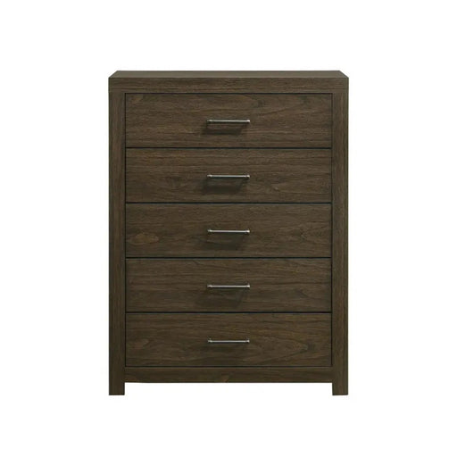 Ashley Furniture3D AvailableWith its clean-lined look and modern attitude, this chest of drawers is a fresh style awakening. A warm gray hue over replicated oak grain easily c...