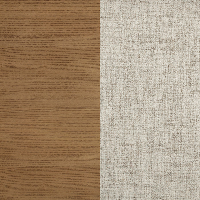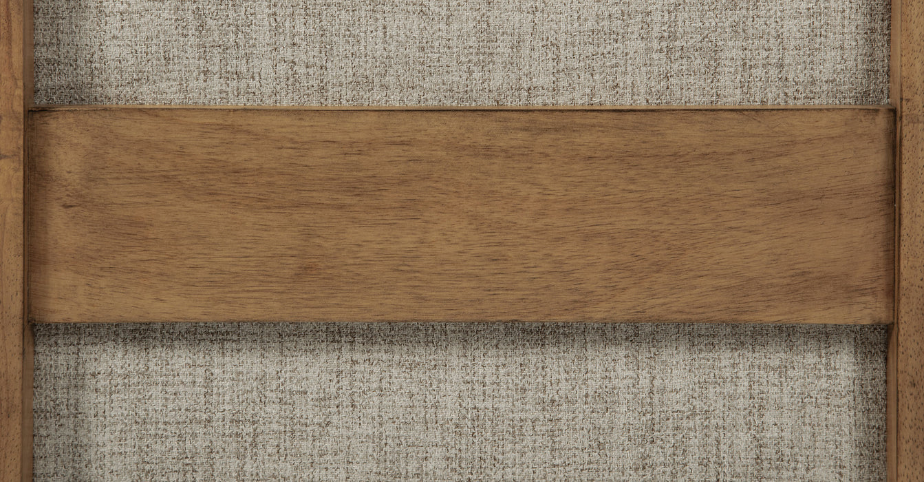 Encourage an approachable ambiance in your kitchen or dining room with this set of two modern side chairs. Each features a refined look with tailored character. Framed backs feature an interior padded, upholstered surface, with the outer back adds a wood ladder for added dimension and depth. The seat is padded with foam and features the same oatmeal upholstery as the back. A natural wood finish frame is built with rubberwood and receives a natural brown finish for versatile appeal. Key Features: • A set of two modern wooden dining chairs feature a framed back with a welcoming look • A natural wood finish is a versatile choice for a stylish and approachable dining room or kitchen • Plush foam cushions are complemented with soft oatmeal fabric upholstery for a neutral look • An outer ladder back design introduces visual dimension and depth to your dining table • Crafted from rubberwood for optimal durability and style